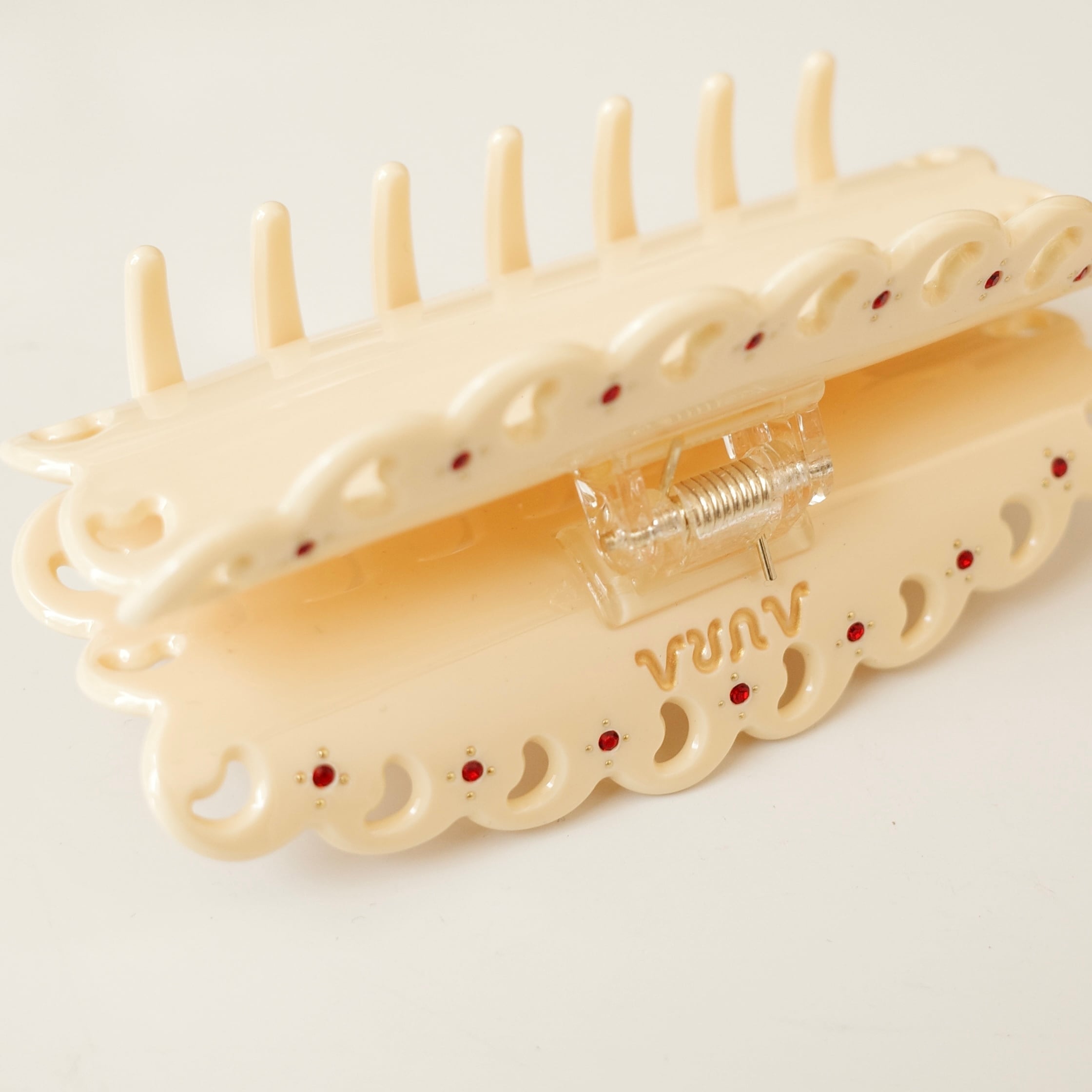 スカラップ状の縁取りに、ムーンモチーフをくり抜いたデザイン。