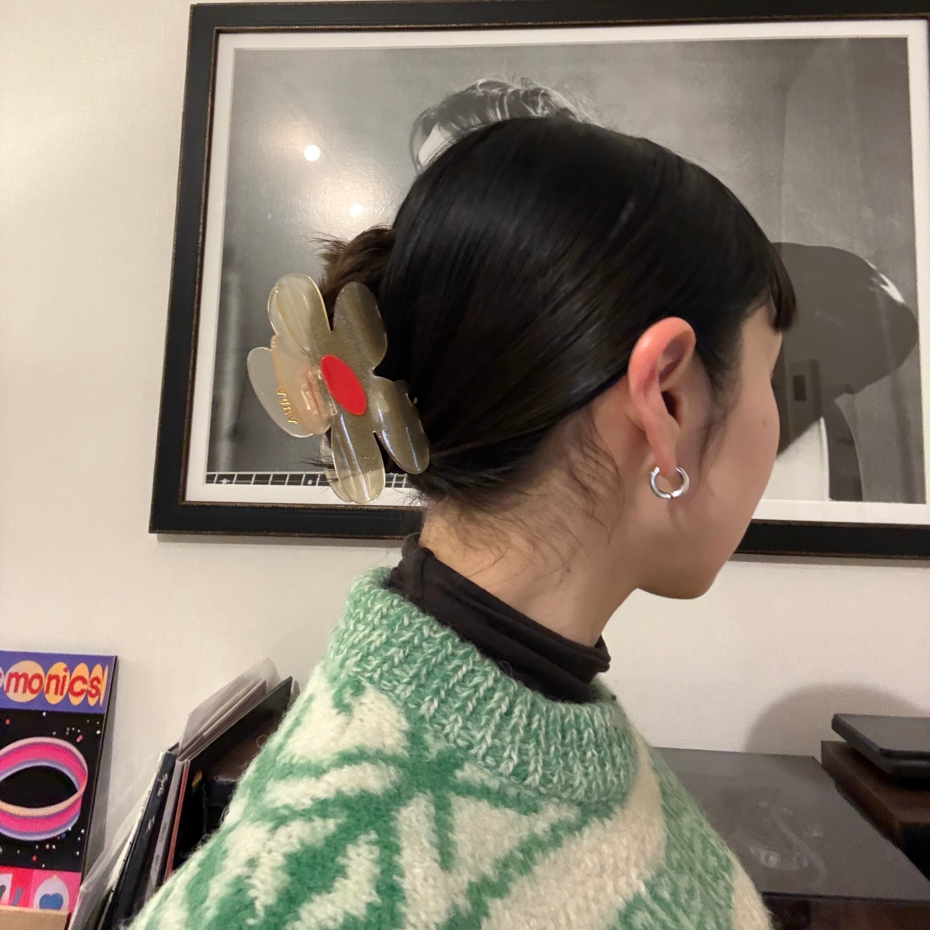 存在感たっぷりの大きめフローラクリップ。